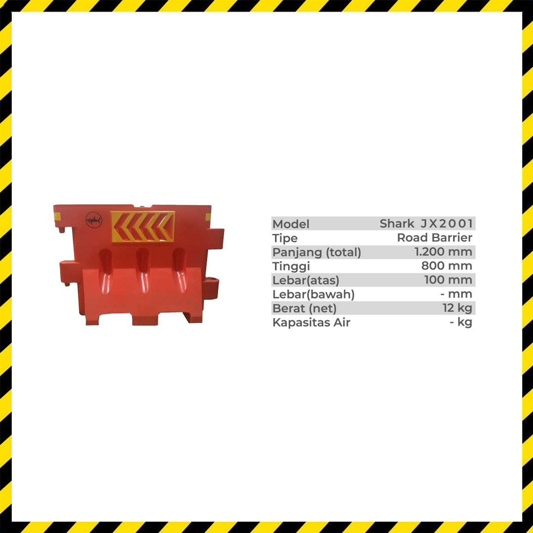 Berikut adalah sejumlah spesifikasi kunci dari Road Barrier Plastic yang dimiliki oleh PT ANUGERAH ATLANTIK: