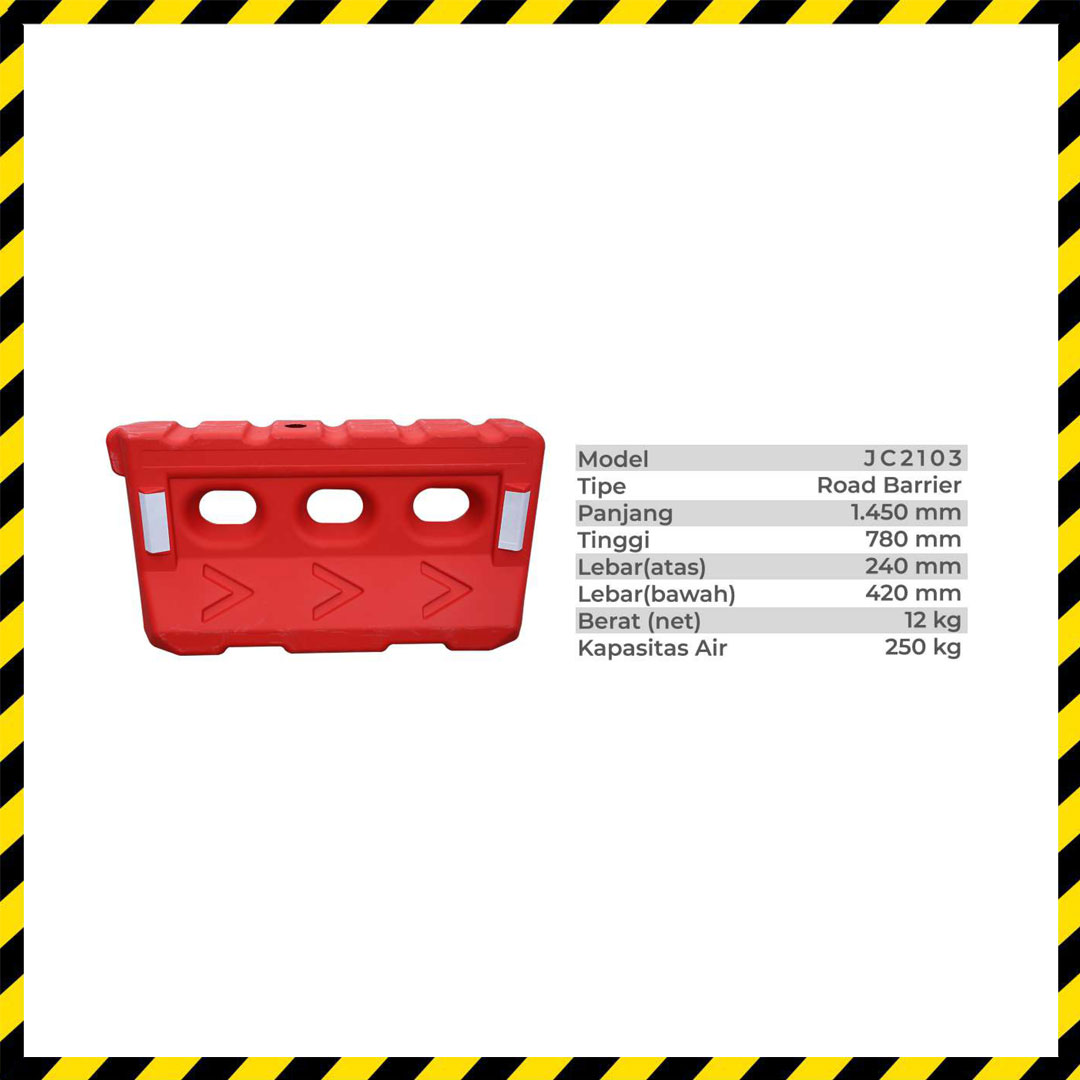 - Penggunaan Multi-Fungsi: Produk ini dirancang khusus untuk digunakan sebagai pembatas jalan di area konstruksi dan area kerja lapangan sementara. Dengan kemampuannya yang dapat diubah menjadi barikade, memberikan fleksibilitas optimal dalam mengatasi berbagai kebutuhan pengaturan lalu lintas.